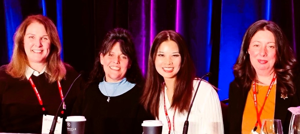 In the session, "Designing Digital Interventions with Users First," Nadine Prevost, Executive Director, Research and Community Services, LLSC, co-presented with Doris Howell, Emeritus Scientist at Princess Margaret Cancer Centre (PMCC), and Dr. Samantha Mayo, Nurse-Researcher at PMCC, with examples of user-centred design of a digital tool they are building for the blood cancer community. (Prevost, Mayo and Howell are shown, left to right, at the top of this page.)